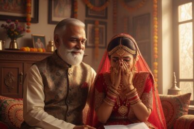 मैं अपनी चमकीली लाल शादी की साड़ी में बैठी थी, मेरे चेहरे पर हल्का मेकअप था, मेरे हाथ बर्फ़ जैसे ठंडे थे। मेरी रोने की हिम्मत नहीं हुई। मुझे डर था कि अगर मैं रोई, तो मैं गाँव की सड़क के आखिर तक नहीं चल पाऊँगी।