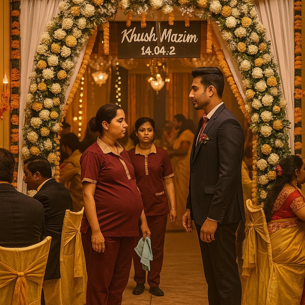 Soft music filled the luxurious wedding hall, blending with the cheerful laughter and conversations of hundreds of guests. Chandeliers sparkled above, fresh flowers cascaded in every corner — creating a scene of sheer extravagance. Aryan Kapoor, 30 years old, stood confidently on stage in a black tuxedo, smiling like a man who had it all. A young, successful businessman admired across industries, this was the biggest day of his life — the day he would marry Meera Malhotra, daughter of a powerful business magnate.